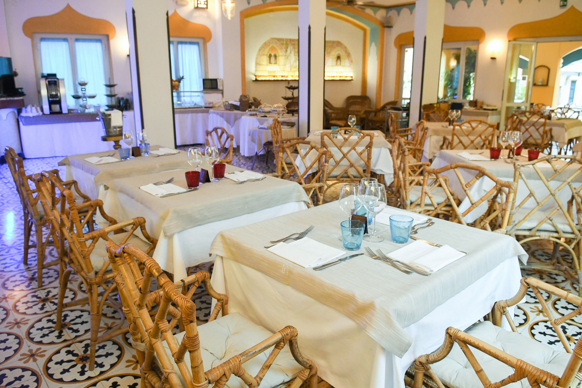 L'hotel Arabesque offre a tutti la possibilità di pranzare o cenare nella magica atmosfera del borgo moresco.